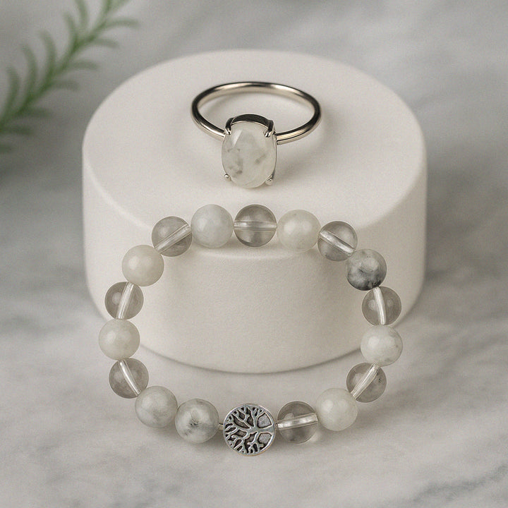Together, the ring and bracelet create an energy loop that balances sensitivity with resilience - the ring deepens your wisdom and inner calm, while the bracelet supports your journey with clarity and confidence.