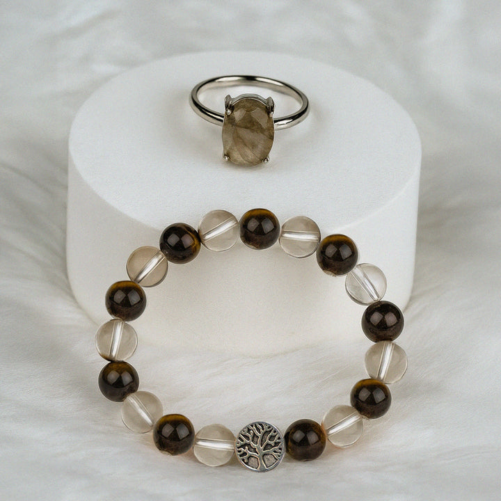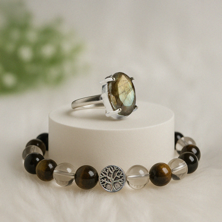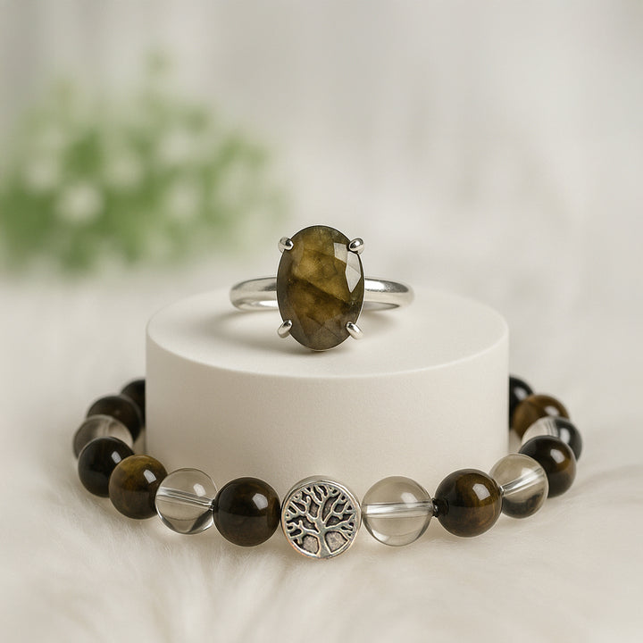 Together, the ring and bracelet form a synergy of grounding and empowerment - the ring provides protection and intuitive guidance, while the bracelet fuels discipline, confidence, and focus, helping you build strong foundations for success.